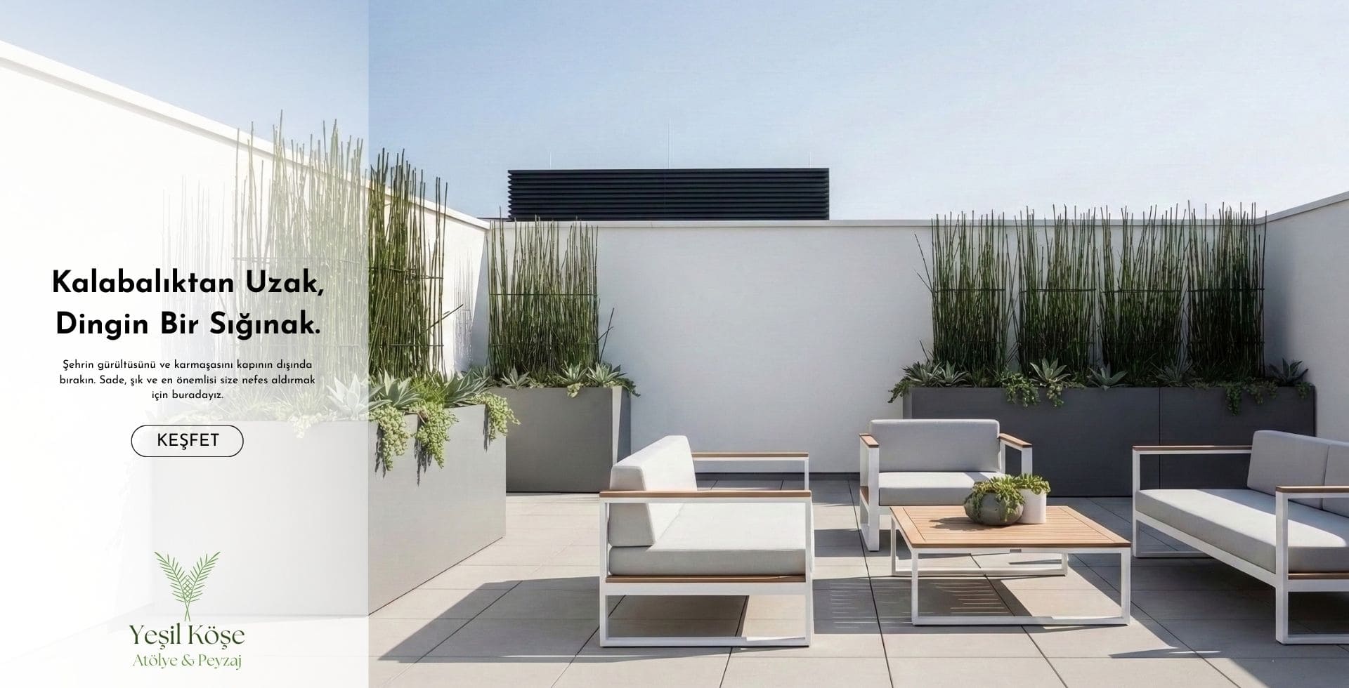 Yeşil Köşe Atölye & Peyzaj, yıllar içinde peyzaj mimarlığının farklı alanlarında biriken deneyimin balkon ve teras yaşam alanlarına taşındığı özel bir tasarım yaklaşımıdır. Şehir yaşamında daha huzurlu, daha estetik ve daha işlevsel alanlar oluşturmak isteyenler için balkon dekorasyonu ve teras düzenleme süreçlerini bütüncül bir bakış açısıyla ele alıyoruz.