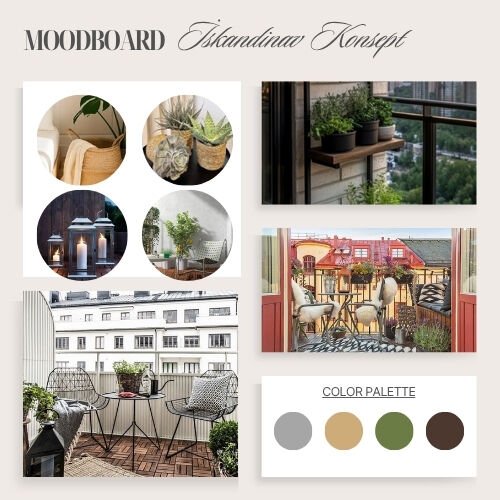 Küçük balkonlar için tasarlanan bu İskandinav stil mini paket; açık renk ahşaplar, sade çizgiler ve az ama etkili bitki kullanımıyla ferah ve dengeli bir atmosfer sunar. Minimal tasarımlı koltuk veya sandalye; beton saksılarda sukulent, sedum, nane ve lavanta ile tamamlanırken, yün örtü, açık raf sistemi ve cam fener-mum detaylarıyla sıcaklık kazanır. Jüt halı ile bütünlenen bu konsept, beyaz, gri renkler ve açık ahşap tonlarıyla huzurlu ve modern bir balkon deneyimi yaratır.